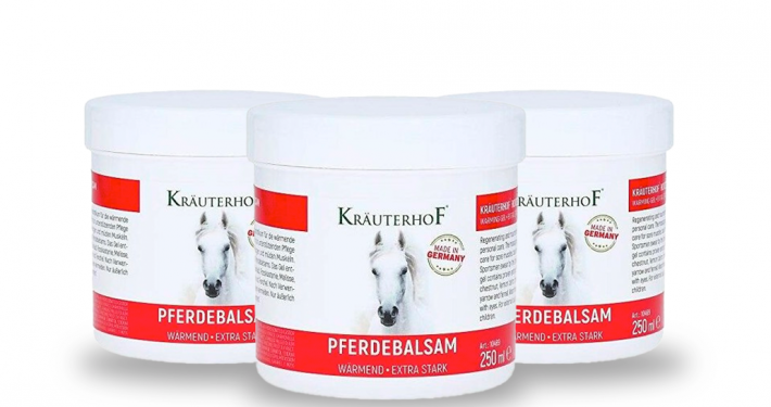 - Bálsamo de Cavalo – Kräuterhof – 500ml Extra Forte- O Pferde Balsam (conhecido como Bálsamo do Cavalo) é um bálsamo que ativa a atividade sanguínea e aquece a pele cansada e dorida, após esforço físico ou muscular. - É recomendado para aquecer e dar uma sensação de alívio e conforto nas zonas musculares logo a seguir ao trabalho, aos treinos desportivos e atividades físicas intensas. - Bálsamo muscular de efeito quente.