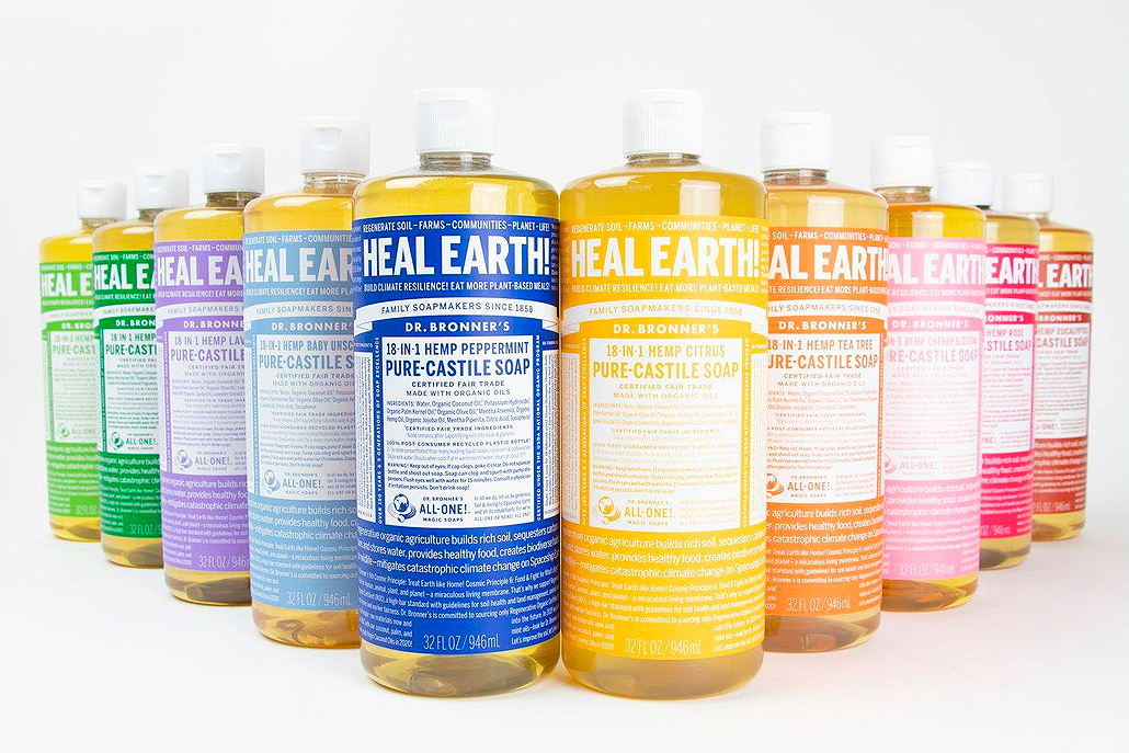 - Dr.Bronner’s- Os produtos da Dr. Bronner’s são ideais para o ser humano, para a casa e para a Terra!