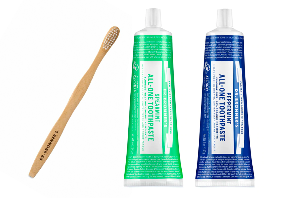 - Pasta.Dentes- A pasta de dentes da Dr. Bronner’s com 70% de ingredientes orgânicos! Não possui agentes de formação de espuma, nem ingredientes sintéticos. não contém flúor, é vegan e não testada em animais.